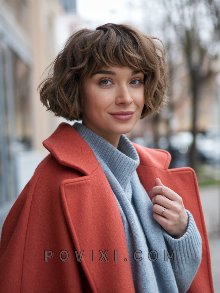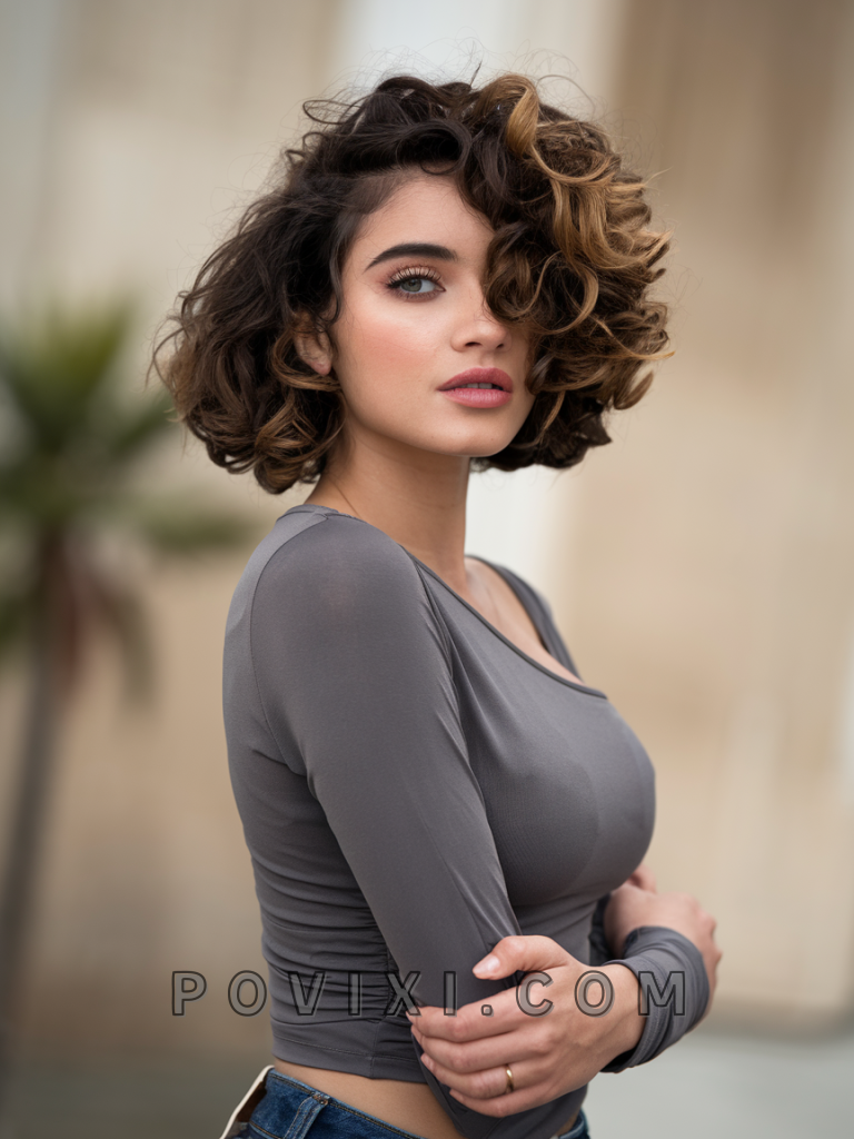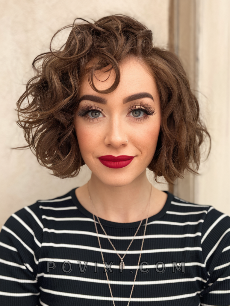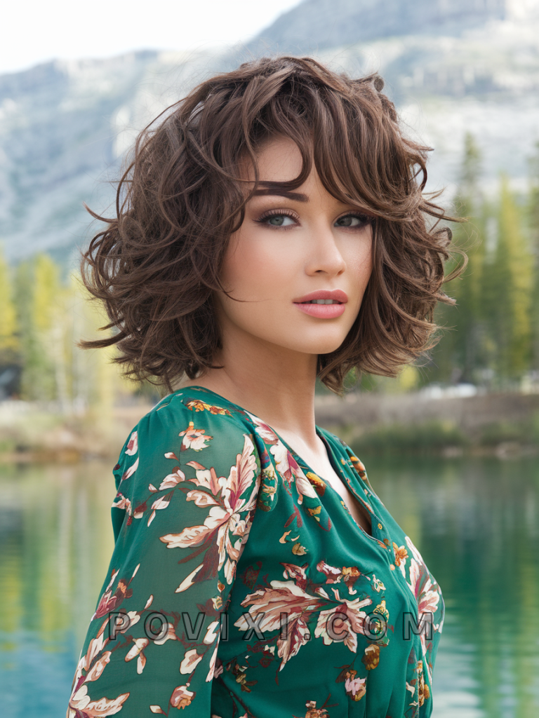 A shoulder-length curly bob exudes elegance and versatility, offering just the right balance between short and long. Perfect for formal events or a laid-back weekend, this hairstyle is ideal for those who love medium-length cuts with a touch of glam. It suits all face shapes but looks exceptionally striking on oval or heart-shaped faces, highlighting cheekbones beautifully.