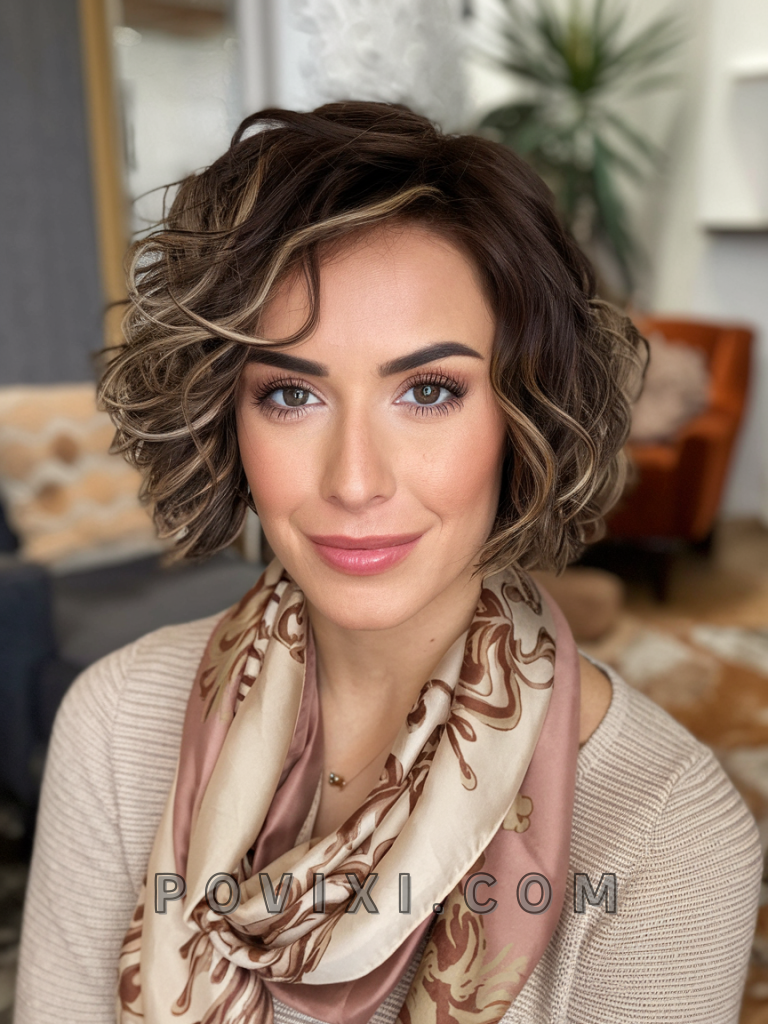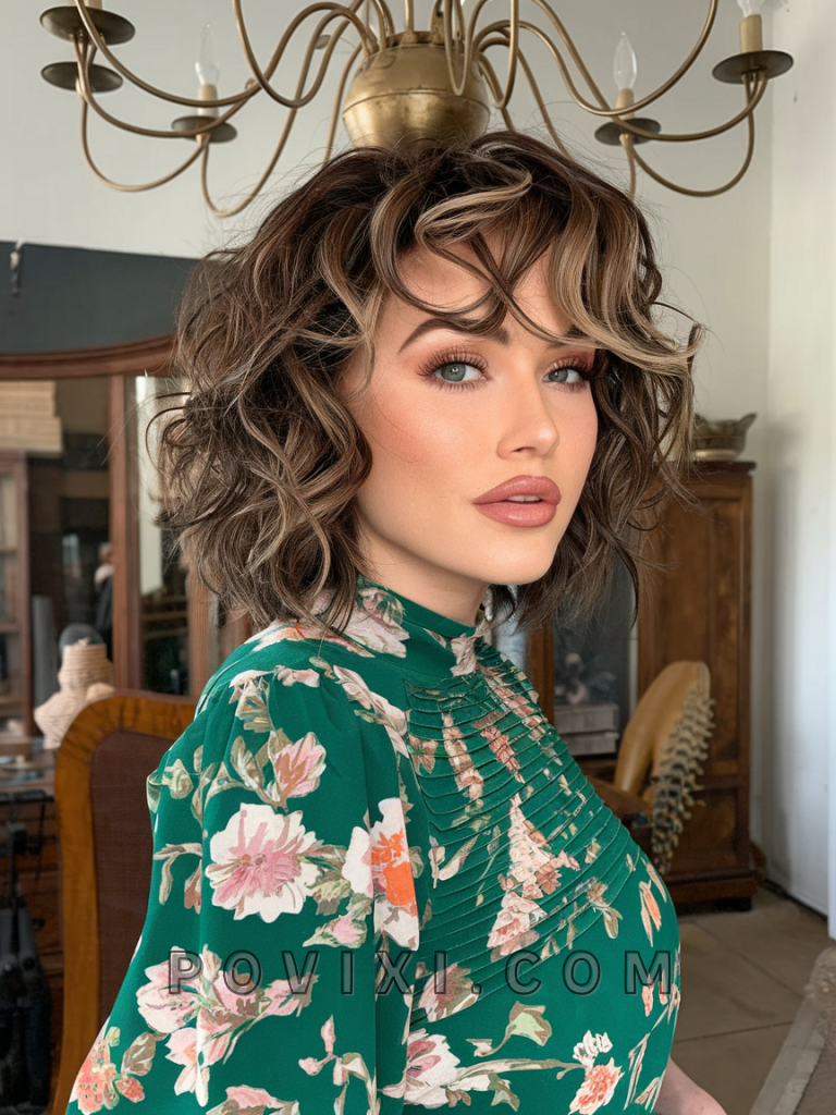 A shoulder-length curly bob with highlights adds depth and dimension to your curls.  The highlights, whether in caramel, honey, or gray, brighten the overall look, making it perfect for special occasions or everyday elegance. This style works best for medium-textured curls.