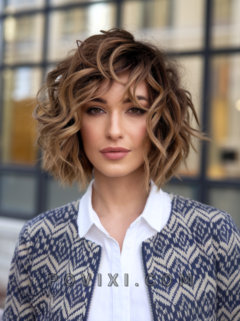 The shaggy curly bob channels retro vibes with its layered, tousled curls. This carefree style is perfect for casual outings, music festivals, or relaxed weekends. It suits most face shapes but works especially well on square faces, softening angular features with its messy charm.