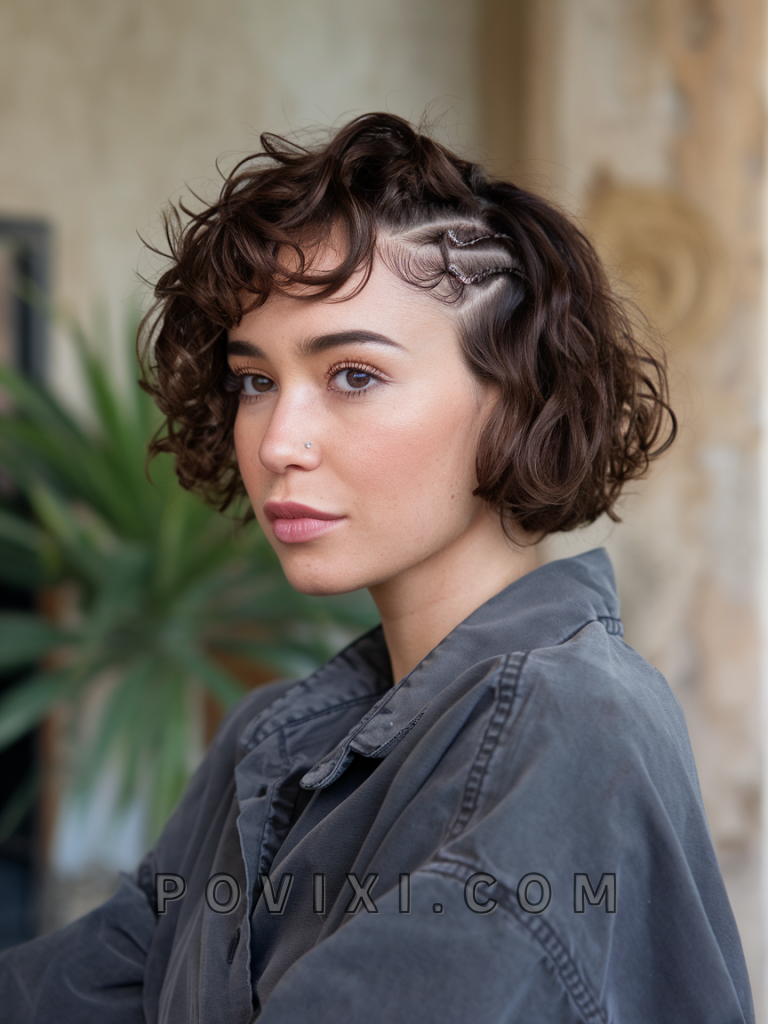 The curly bob with undercut is a bold, edgy style that blends texture with a touch of rebellion. The shaved section underneath contrasts with the voluminous curls on top, making it a standout look for concerts or night events. This style flatters angular and round face shapes alike.
