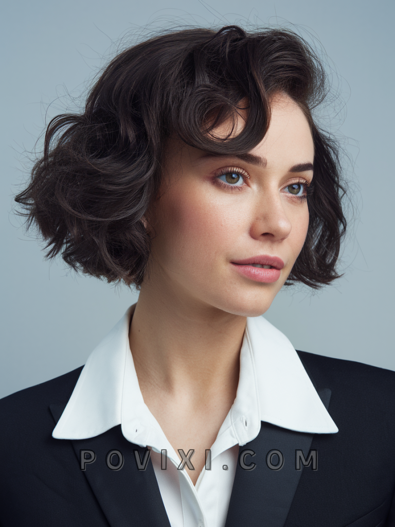 An angled curly bob adds a touch of edge and sophistication to your look. This style features shorter layers at the back and longer curls at the front, creating an angular shape that flatters oval and round face shapes. Perfect for evening galas or professional events, the angled bob is a bold choice that exudes confidence.