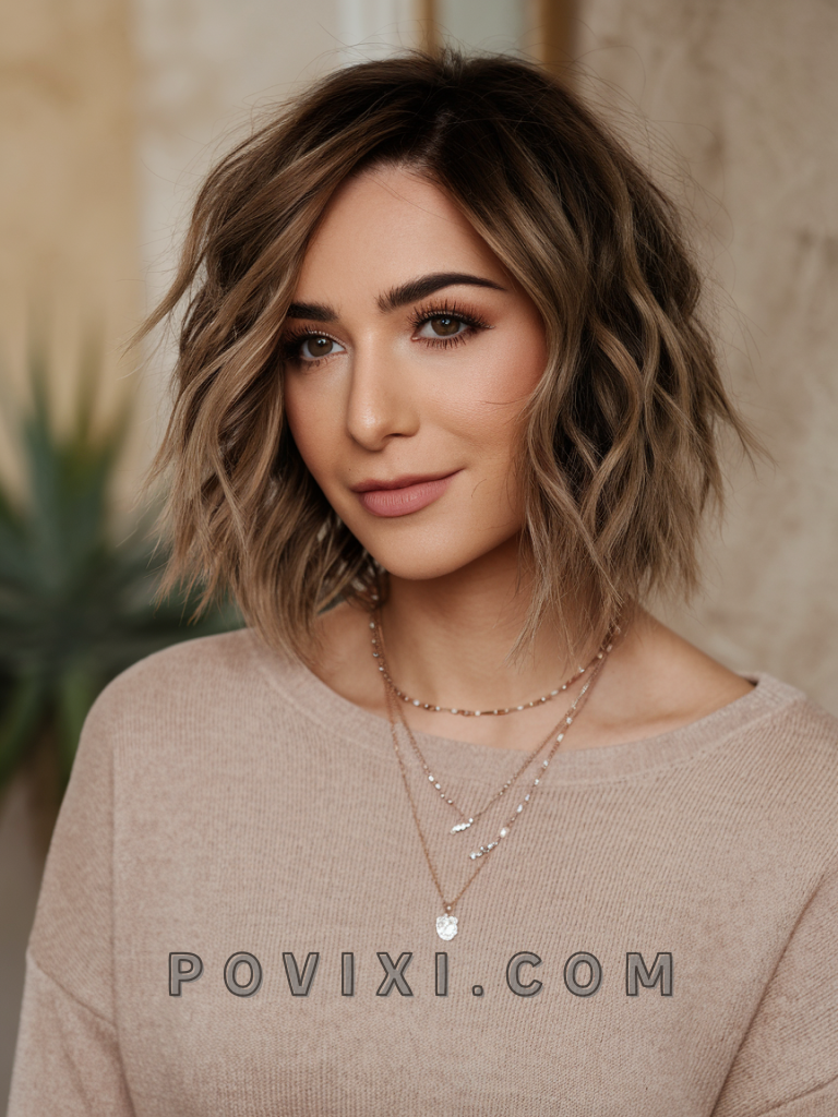 A wavy bob with layers adds dimension and softness, making it a favorite among those with medium-length or fine hair. This style works beautifully for weddings, formal events, or romantic dinners, especially for those with round faces or softer jawlines.