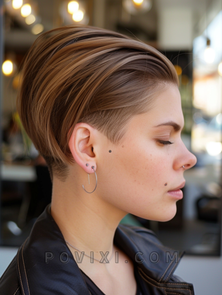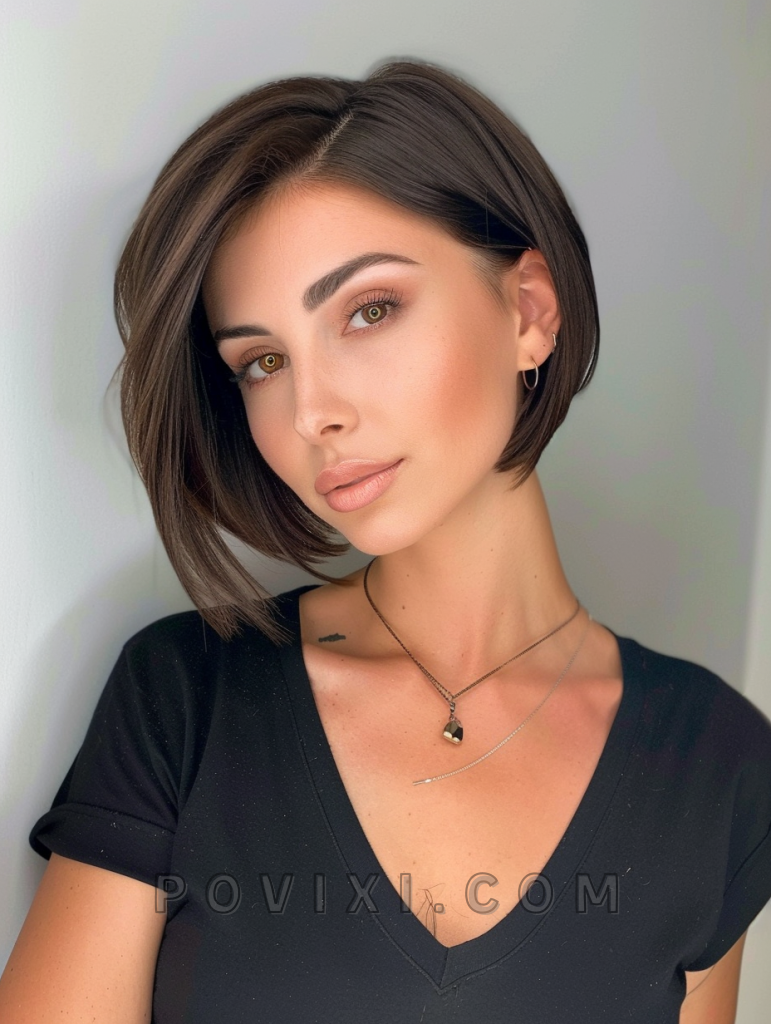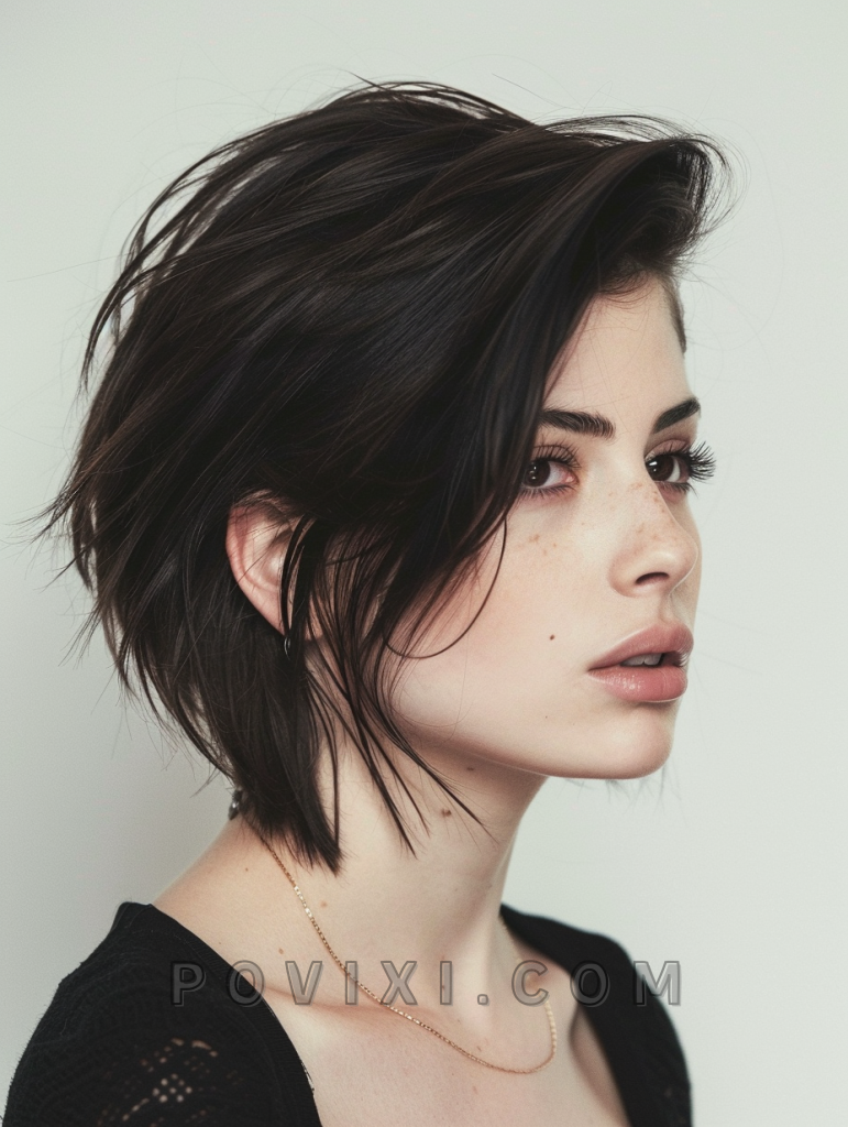 The classic undercut bob remains a favorite for its timeless appeal and modern twist. This style features a sleek bob with a hidden undercut, creating a dramatic contrast that’s perfect for those who love subtle edginess. Ideal for professional settings or casual outings, this haircut flatters oval and heart-shaped faces and brings out the best in dark and bold eye colors.