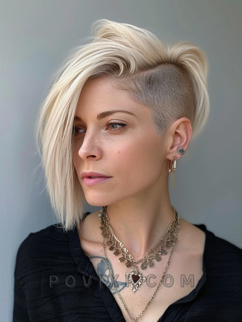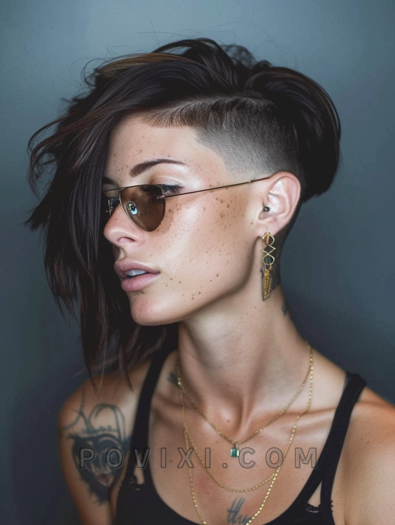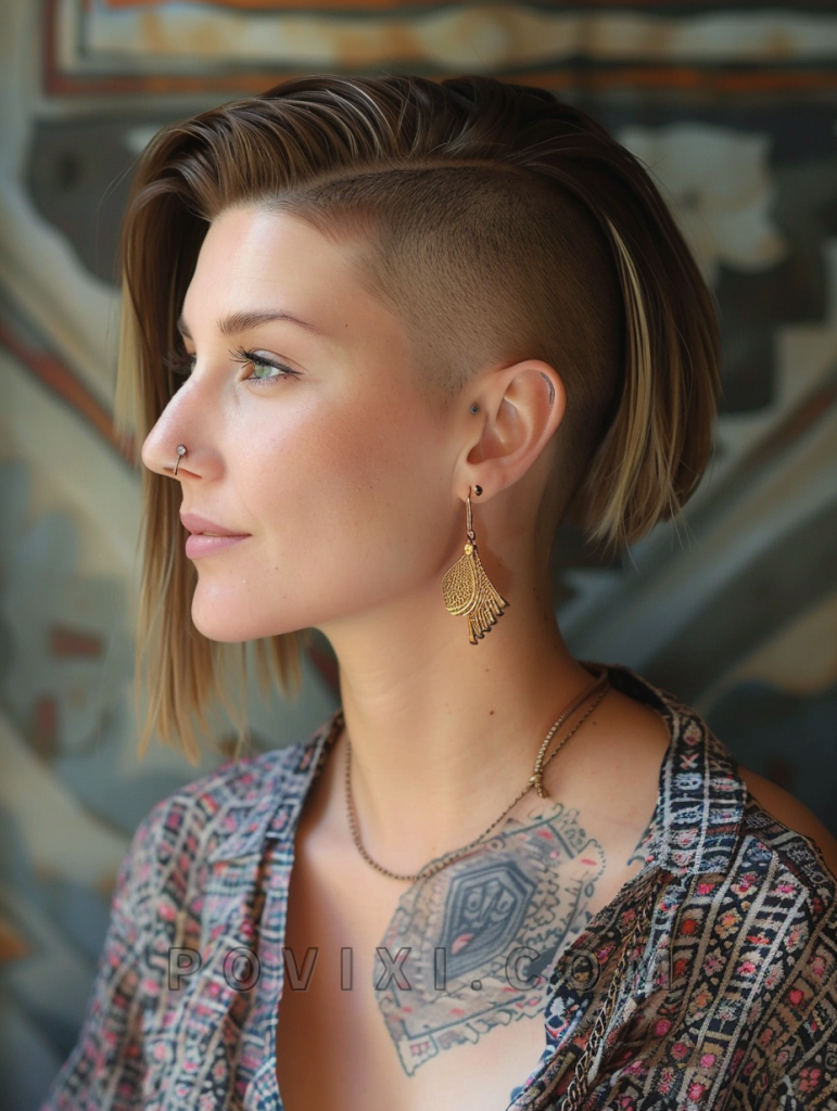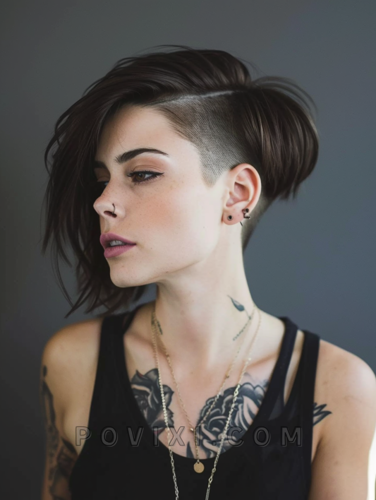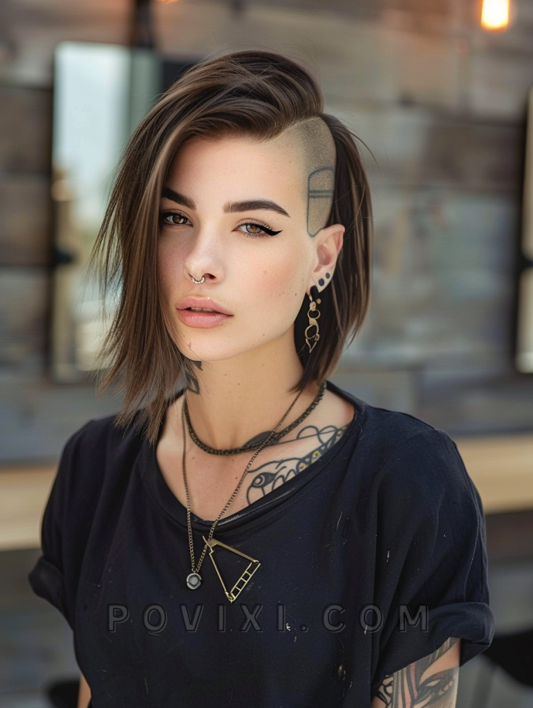 The alternative undercut bob is for those who love to push the boundaries of conventional hairstyles. This style combines a bob with creative elements like shaved patterns or bold colors in the undercut, making it a standout choice for artistic and daring individuals. It’s perfect for festivals, parties, or any event where you want to make a statement.