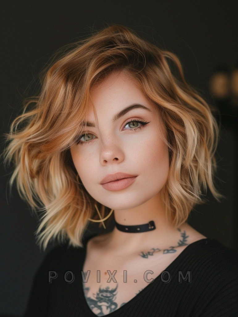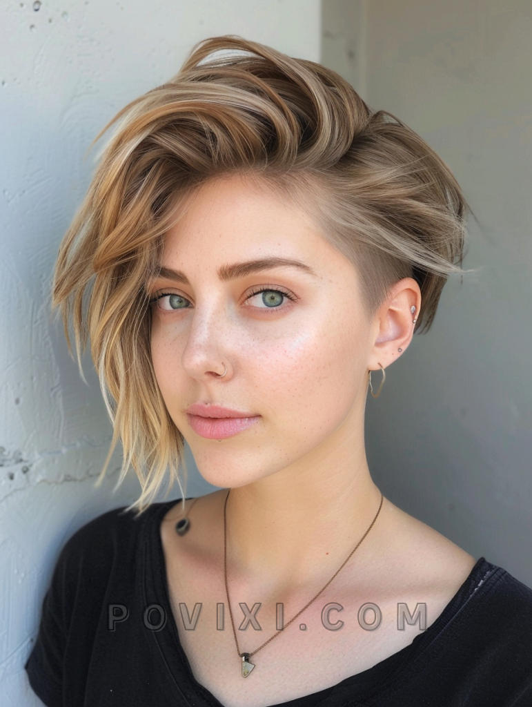 The wavy undercut bob combines the elegance of waves with the edginess of an undercut. This style features soft, beachy waves on top with a subtle undercut, making it ideal for casual and semi-formal events. It flatters oval and heart-shaped faces, enhancing natural beauty.
