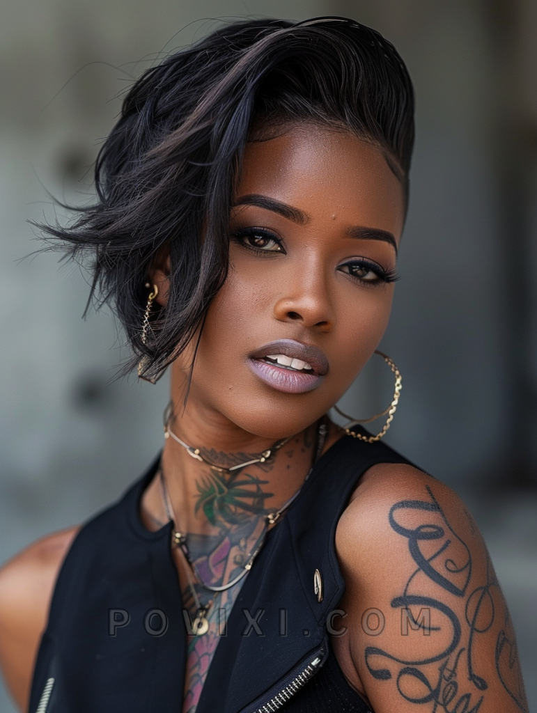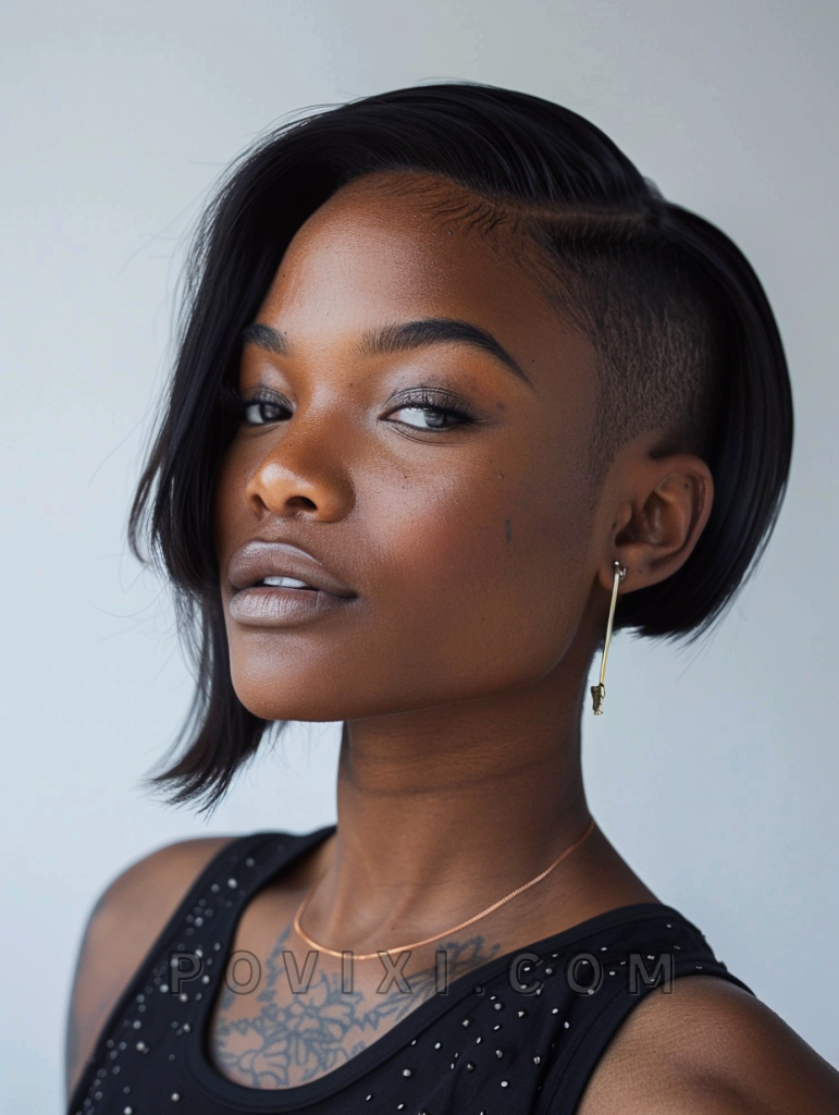 The undercut bob for black women is designed to showcase natural hair textures while adding an edgy touch. This style features a sleek bob with a hidden undercut, making it a versatile choice for both casual and formal events. It flatters oval and heart-shaped faces.