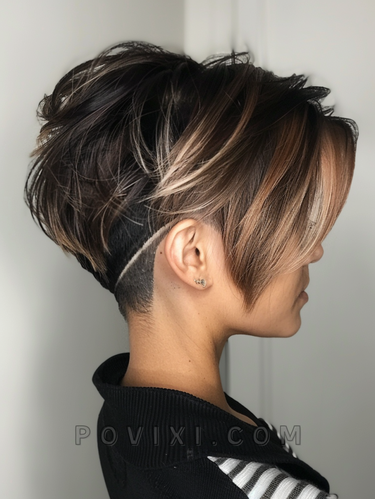 To achieve this look, your stylist will add hidden highlights beneath the top layers while incorporating the undercut. To maintain the vibrant colors, use a color-protecting shampoo and conditioner. Regular trims are essential to keep the undercut sharp and the highlights vibrant.
