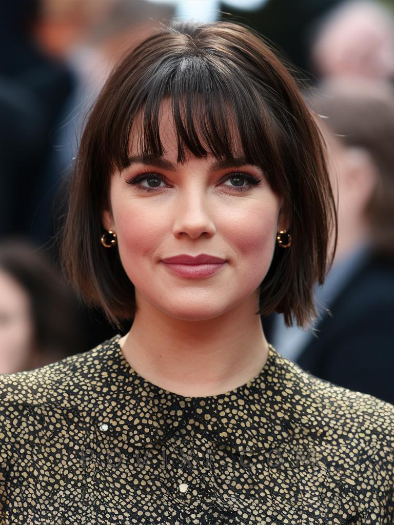 The undercut bob with fringe adds a playful and youthful twist to the traditional bob. Featuring a blunt or wispy fringe along with a hidden undercut, this style is perfect for framing the face and highlighting the eyes. Suitable for both formal and casual settings, it works well for heart-shaped and long faces.
