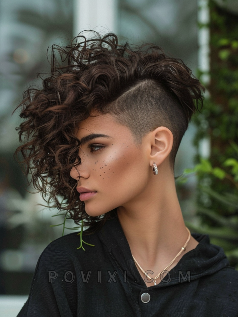 The short curly undercut bob is perfect for showcasing natural curls while adding an edgy touch. This style features short, bouncy curls with a hidden undercut, making it ideal for those with curly hair looking for a stylish yet manageable cut. Suitable for casual outings or special occasions, it flatters oval and heart-shaped faces.