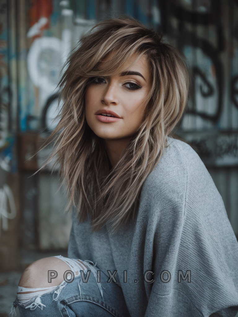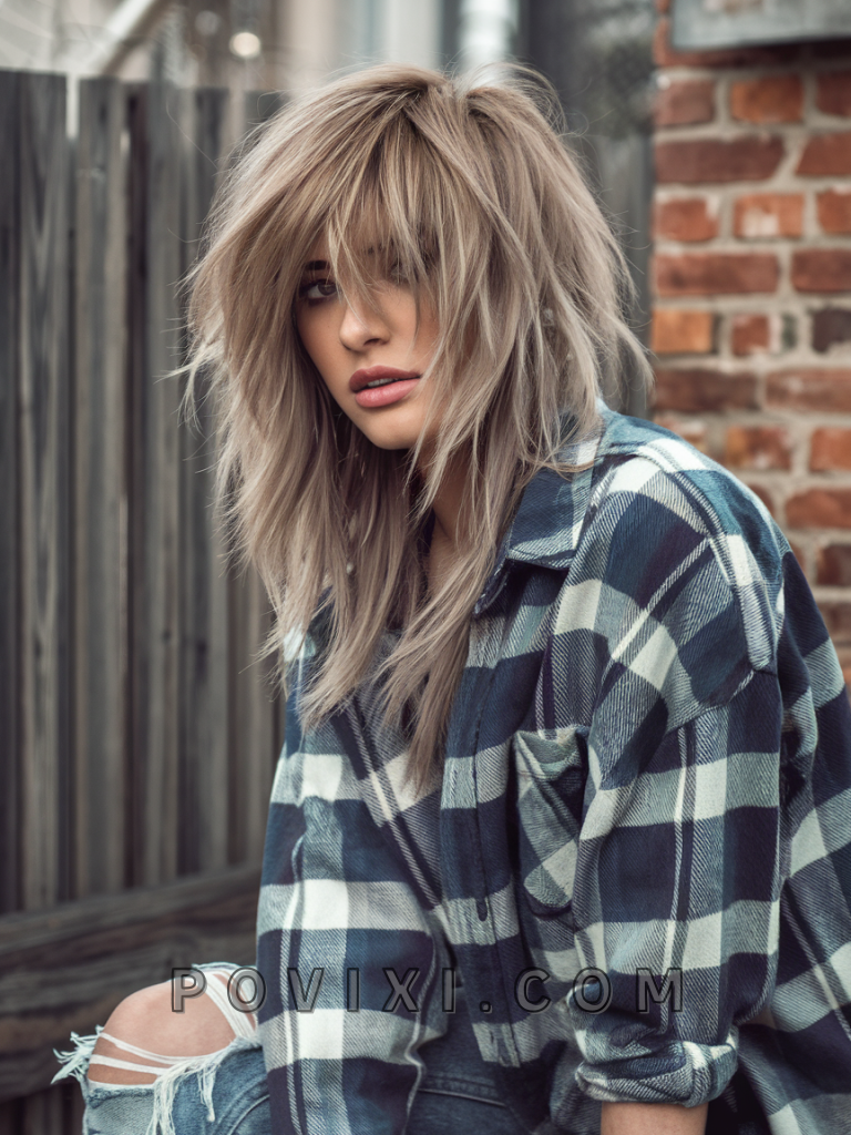 The grunge-inspired layered shag is edgy and full of personality. Perfect for short hair or medium length hair, this style suits rectangular or oval faces. Ideal for vintage enthusiasts or rock concerts, it’s a bold statement.