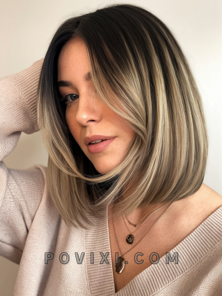 A long bob paired with balayage highlights gives your hair a sun-kissed, natural glow. This style is perfect for women who want a low-maintenance color option that still looks fresh and trendy. The balayage technique works well with brunette, blonde, or brown hair, adding depth and dimension. This style is ideal for oval and heart-shaped faces.