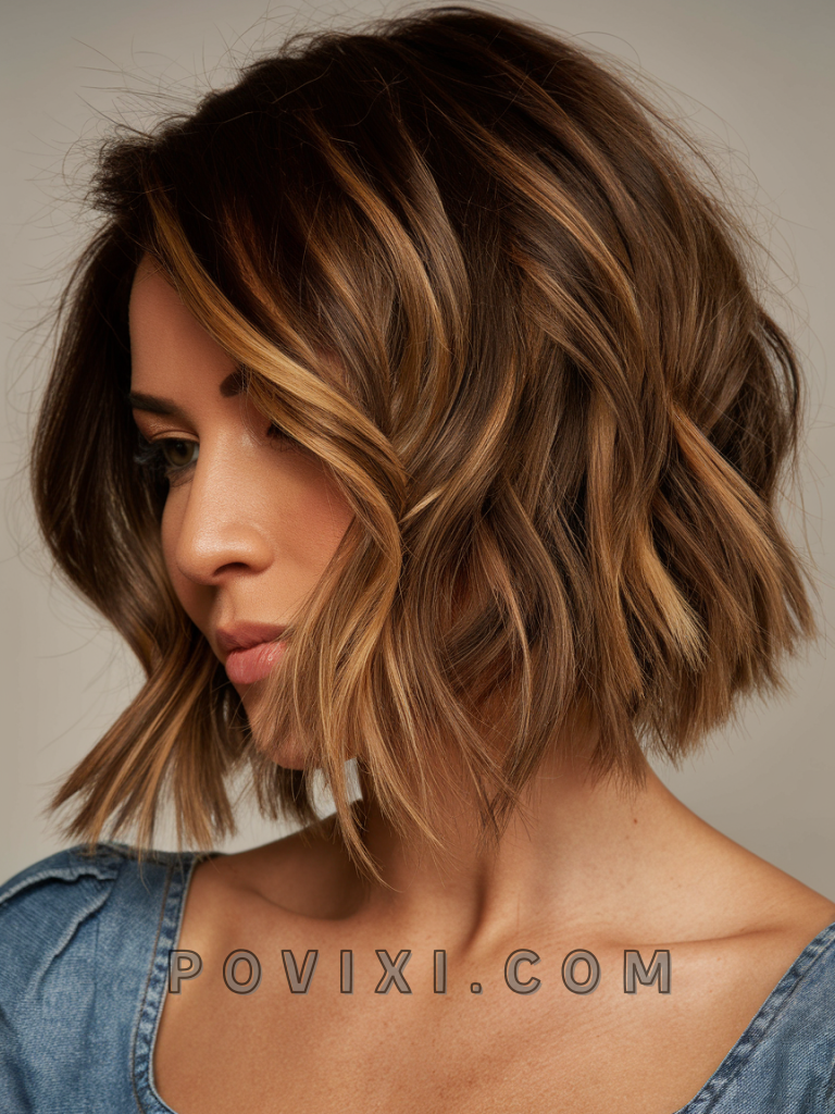 Achieving this look requires precision highlighting, focusing on the mid-lengths and ends for a natural sun-kissed effect. Maintenance is key: use a sulfate-free shampoo like Aveda’s Nutriplenish to lock in the caramel tones and keep your hair healthy. Regular trims every 6–8 weeks will also keep your bob sharp and stylish.