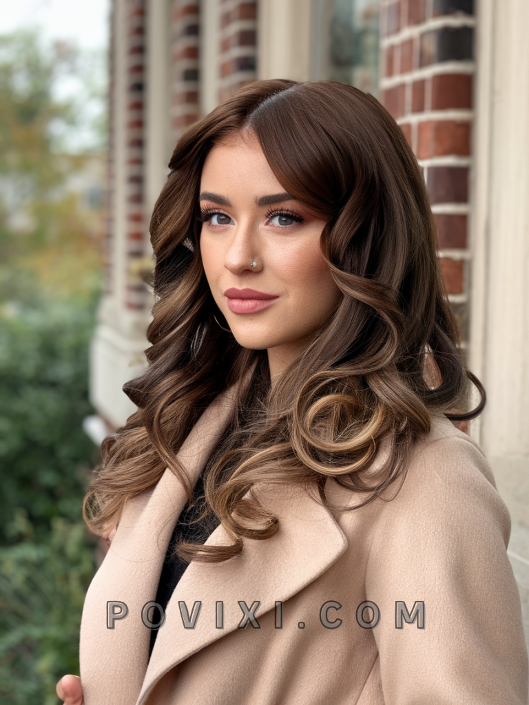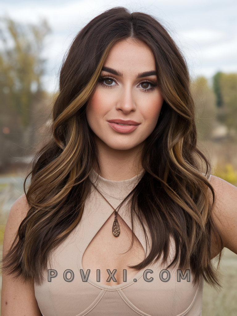 Espresso brown hair paired with honey highlights offers a rich and warm look perfect for both fall and spring. This style provides dimension and depth while maintaining a natural, understated elegance. It works well with medium to long hair and flatters most face shapes, especially oval and heart-shaped. The honey tones add a golden glow, enhancing hazel or light brown eyes.