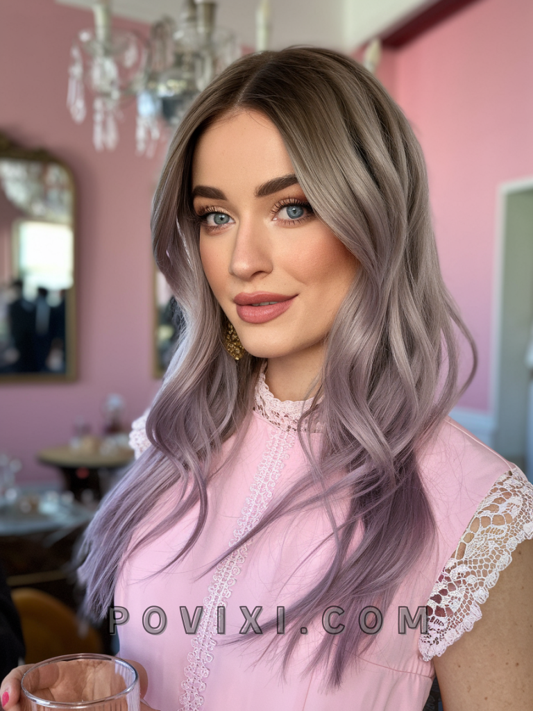 To create this style, the ends are pre-lightened before applying a lavender toner. Use a color-protecting shampoo like Matrix Keep Me Vivid to maintain the pastel hues, and consider a leave-in conditioner to keep the ends hydrated.