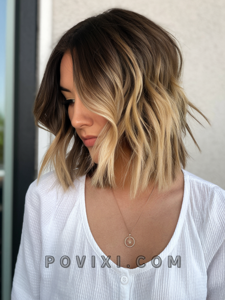 Achieving this look requires precision highlighting, focusing on the mid-lengths and ends for a natural sun-kissed effect. Maintenance is key: use a sulfate-free shampoo like Aveda’s Nutriplenish to lock in the caramel tones and keep your hair healthy. Regular trims every 6–8 weeks will also keep your bob sharp and stylish.
