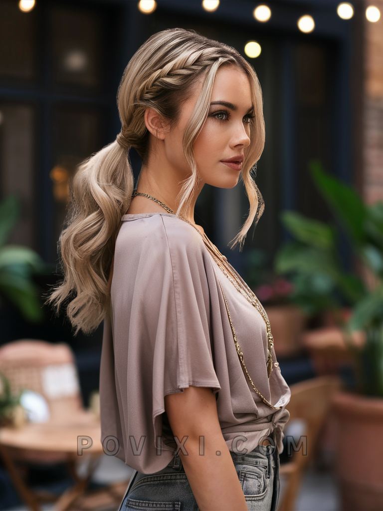 Incorporating a braid into your low sleek ponytail adds a unique and stylish twist. This hairstyle is perfect for casual outings and can easily transition to more formal settings. It suits most face shapes and is particularly flattering for those with round or square faces, as the braid adds an elongating effect.