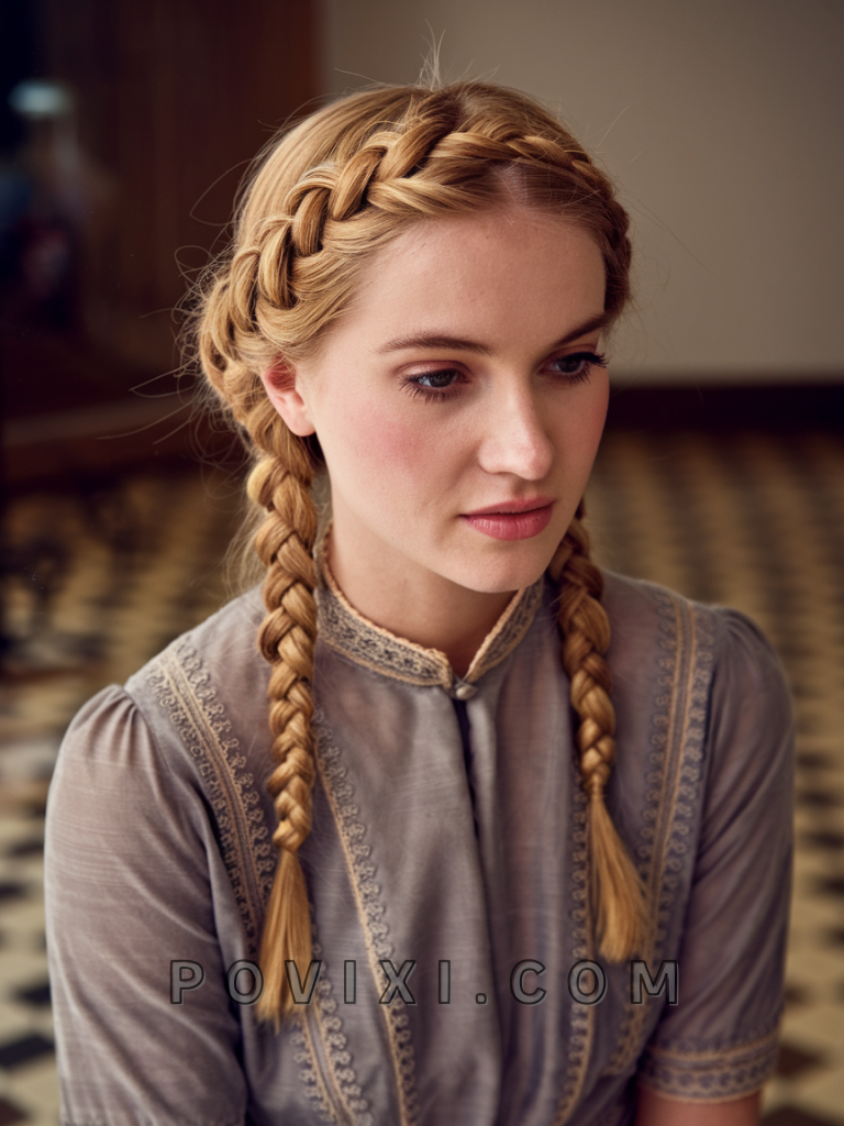 The braided crown from the Edwardian era is a romantic and intricate style perfect for special occasions. This hairstyle involves braiding sections of the hair and wrapping them around the head to create a crown effect. It suits long and medium length hair and pairs beautifully with floral accessories and vintage-inspired gowns.