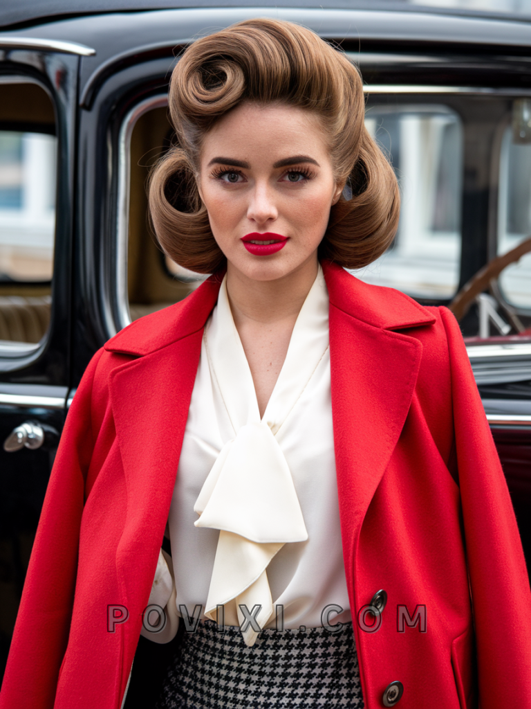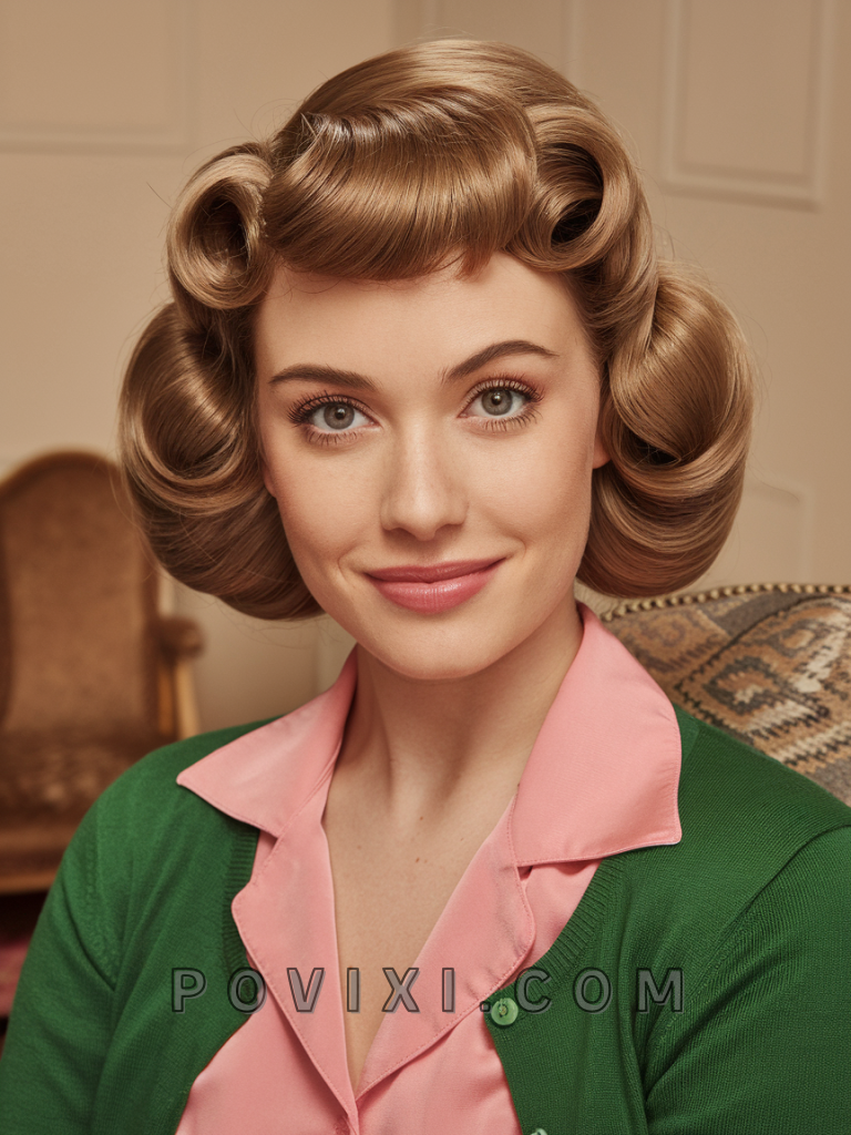 The 1950s curly bob is a classic hairstyle that embodies femininity and charm. This look features soft, bouncy curls that frame the face, making it perfect for both casual daytime outings and more sophisticated evening events. This style works well for short hair and complements round and square face shapes. Light eyes, such as blue or green, will sparkle against this curly hair look. The vintage aesthetic of the 1950s curly bob is both timeless and cute, adding a playful touch to any outfit.