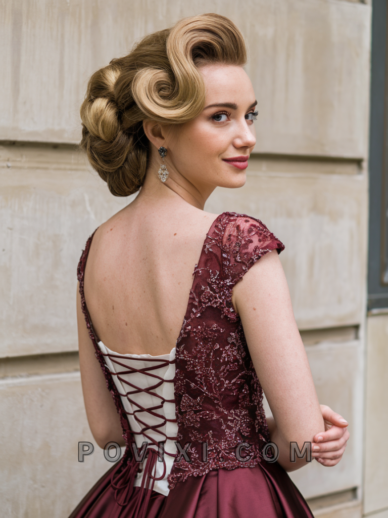 This elegant updo is inspired by the late 19th century and early 20th century. The Gibson Girl updo features soft, voluminous twists and is ideal for formal events or vintage photoshoots. It complements oval and heart-shaped faces and pairs well with delicate jewelry and soft, neutral makeup.