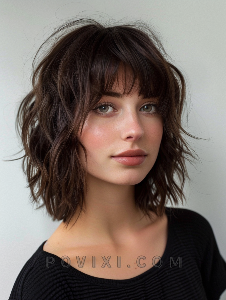 The vintage-inspired wavy layered bob harks back to the glamorous waves of the 1920s and 30s. This style suits those with an appreciation for classic fashion and works well with round and square face shapes.