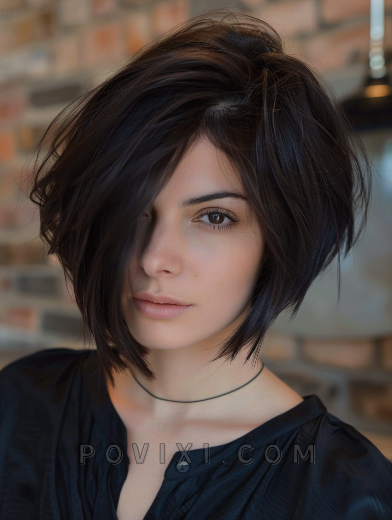 The asymmetrical layered bob offers a unique, bold look that stands out in a crowd. It’s best suited for confident individuals looking for a style that challenges the norm. This bob can be tailored to flatter any face shape by adjusting the length and angle of the asymmetry.