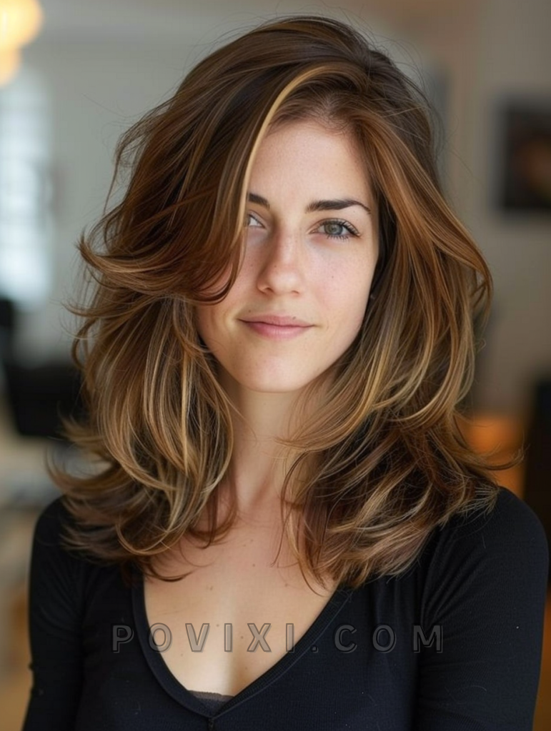 To maintain this look, use a color-safe shampoo and a conditioning treatment to keep the highlights looking fresh and the layers defined. Occasional use of a heat protectant is also recommended when styling with heat tools.