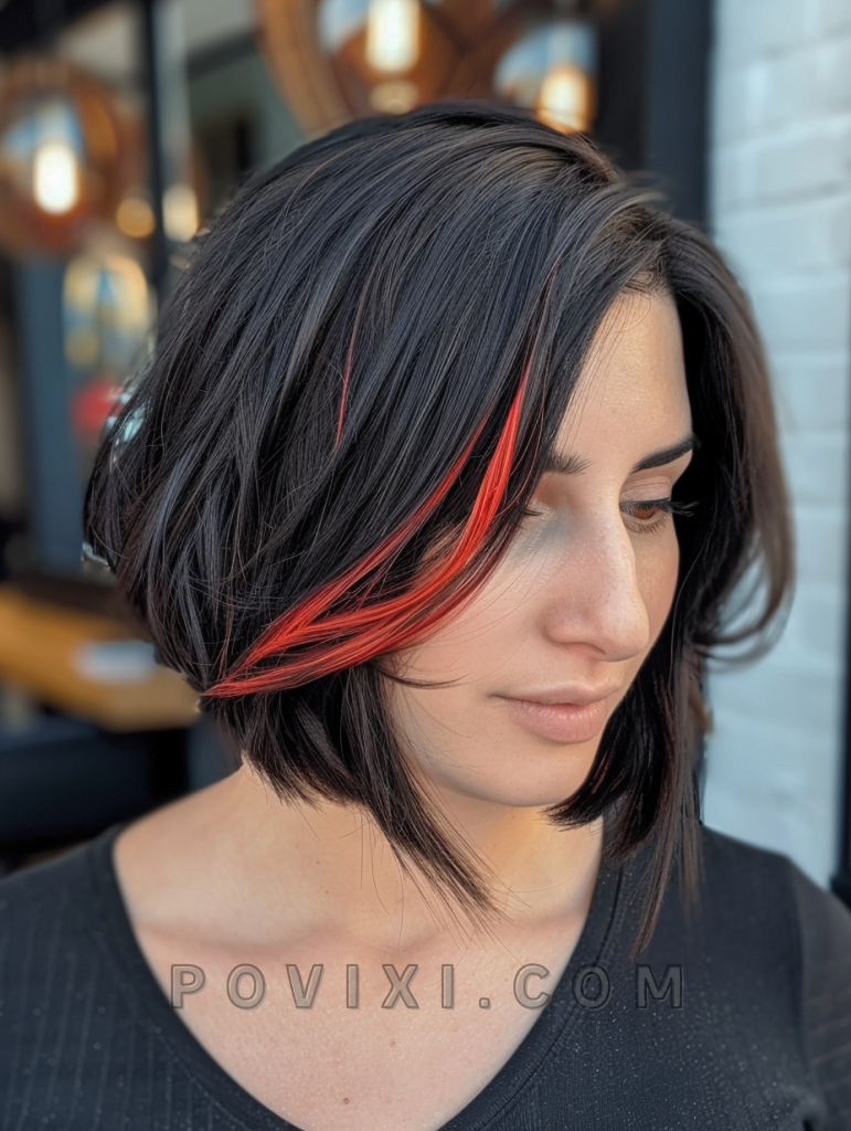 The sleek layered bob with a side part offers a polished and refined appearance, perfect for professional settings or elegant events. This style accentuates sharp, angular face features, making it a great match for rectangular and oval face shapes.