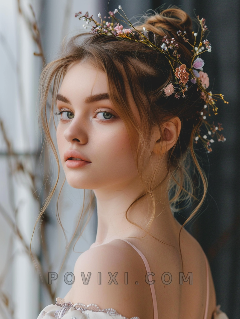 Create a dreamy, bohemian vibe by combining a braided bun with a floral headband. This style is perfect for outdoor concerts or beach weddings, giving a laid-back yet put-together look. It’s best suited for long or medium length hair.