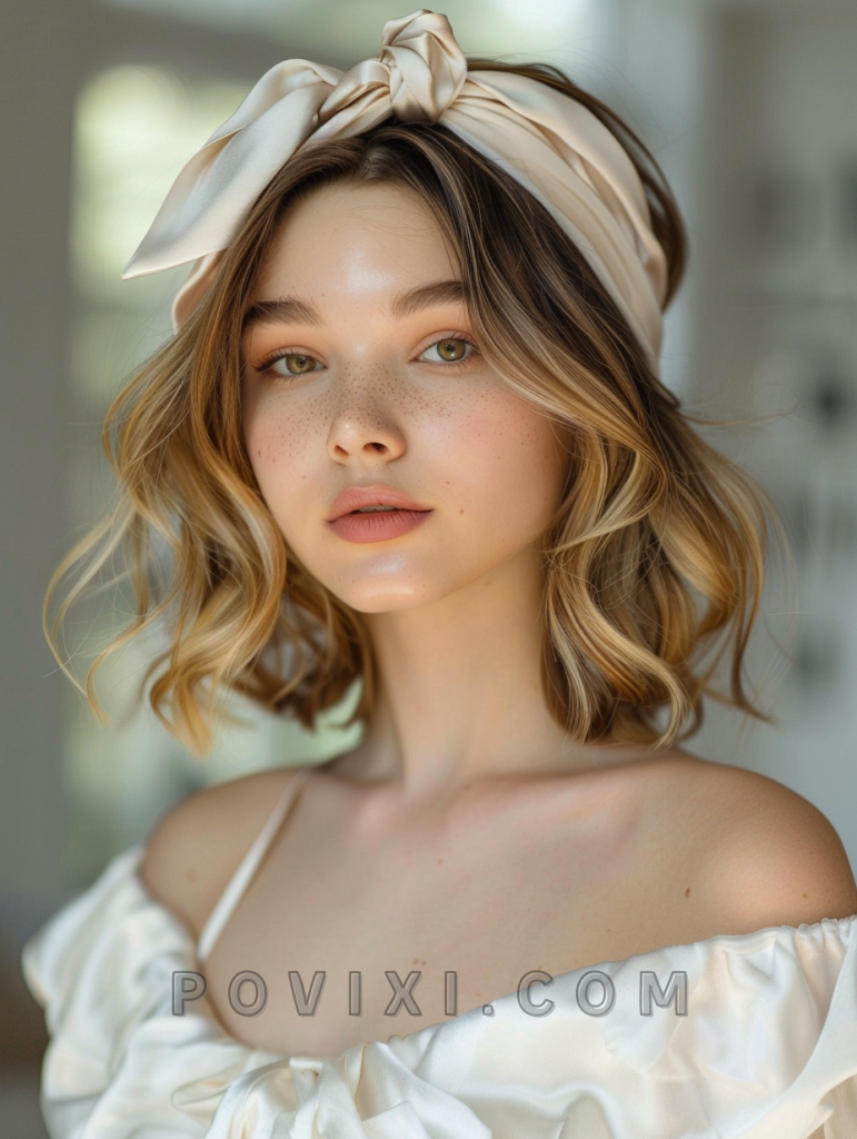 The bob is an evergreen choice that works beautifully for short hair, offering a playful yet sophisticated look. Ideal for those with oval and heart-shaped faces, this style accentuates the cheekbones and balances the facial features. A twisted headband adds a whimsical touch, making it perfect for casual outings or creative workplaces.