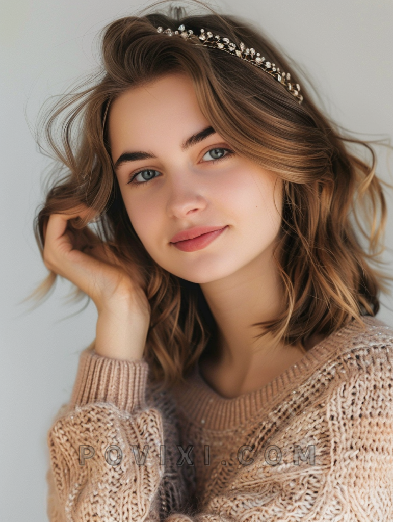 For a laid-back yet stylish look, loose waves paired with a silk headband are perfect. This hairstyle is ideal for everyday elegance and suits medium length to long hair. It’s particularly flattering for soft, romantic settings like a coffee date or a stroll through a museum.