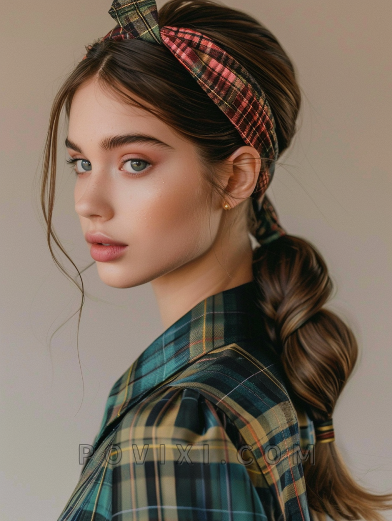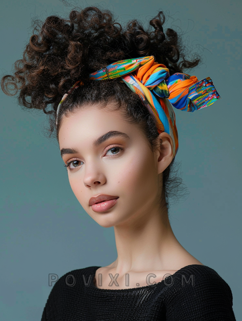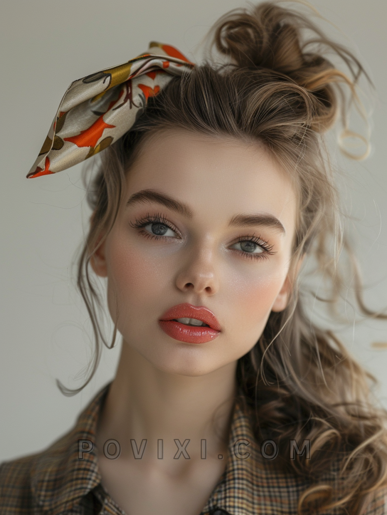 Give a nod to the ’60s with a high ponytail combined with a scarf-style headband. This look is great for adding volume to long or medium hair and works well for casual outings or retro-themed parties.