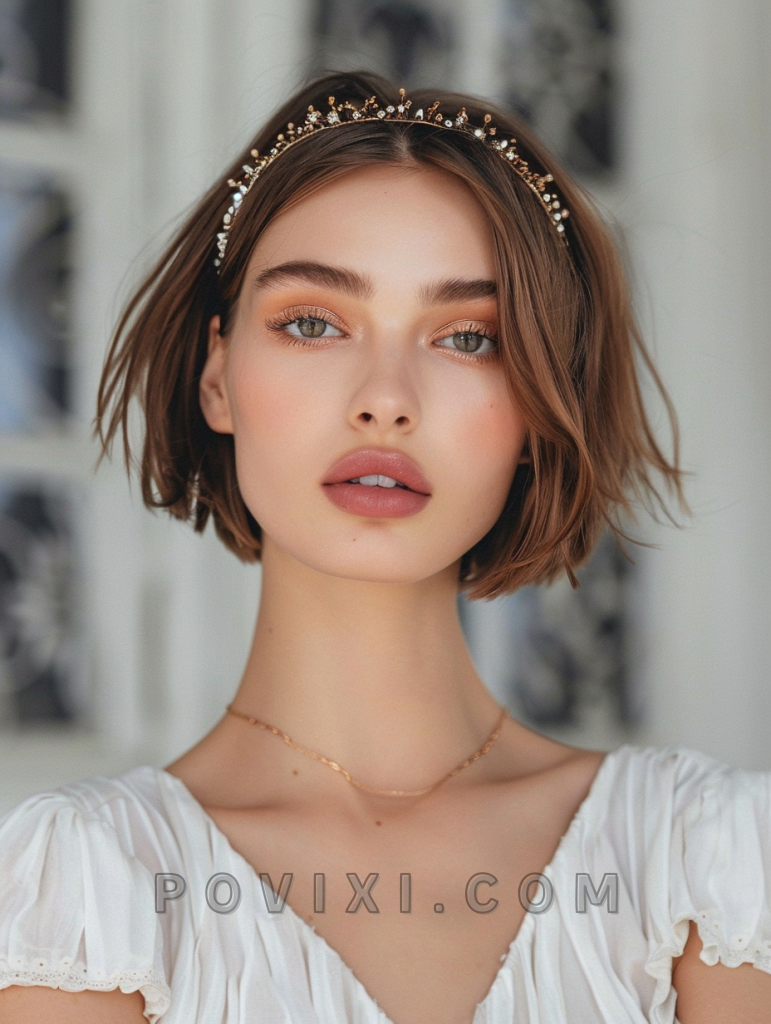 A sleek pixie cut paired with a metallic headband is the epitome of chic minimalism, ideal for those with short hair. This style is perfect for formal events where making a modern, bold statement is key.