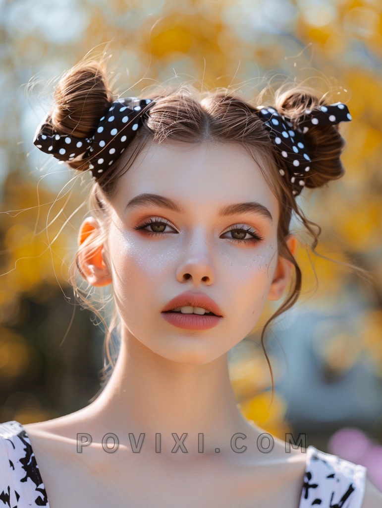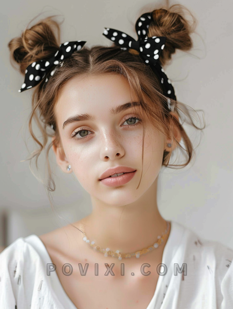 Double buns are fun and youthful, making them a great choice for casual outings or creative environments. They work best on medium to long hair. A polka dot headband can add a whimsical touch to this playful style.