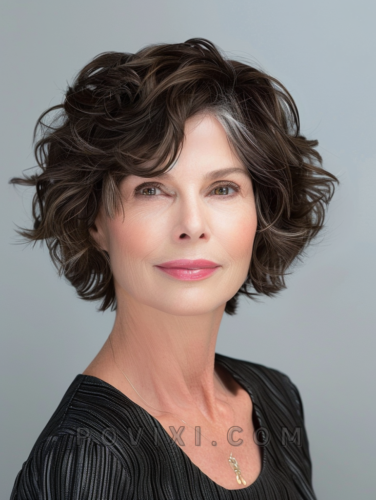 Combine the simplicity of a pixie cut with the charm of a curly fringe. This style is particularly flattering for older women looking to add volume and movement to their hair. It’s sophisticated and easy to maintain, making it a perfect choice for busy lifestyles.
