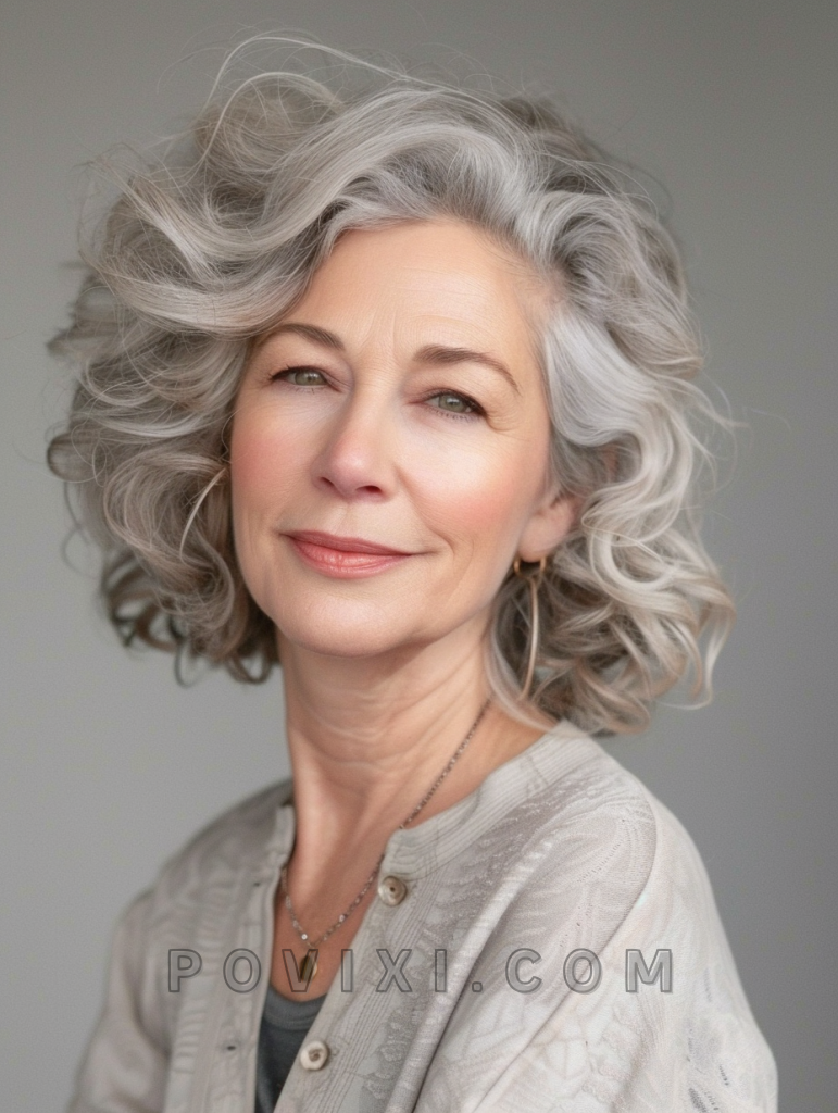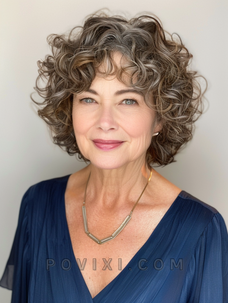 A modern twist to the traditional bob, this haircut introduces layers that enhance the natural volume of curly hair. It’s a fantastic option for women over 50, offering a rejuvenating effect. The layers add movement and depth, making the style suitable for both formal and informal settings.