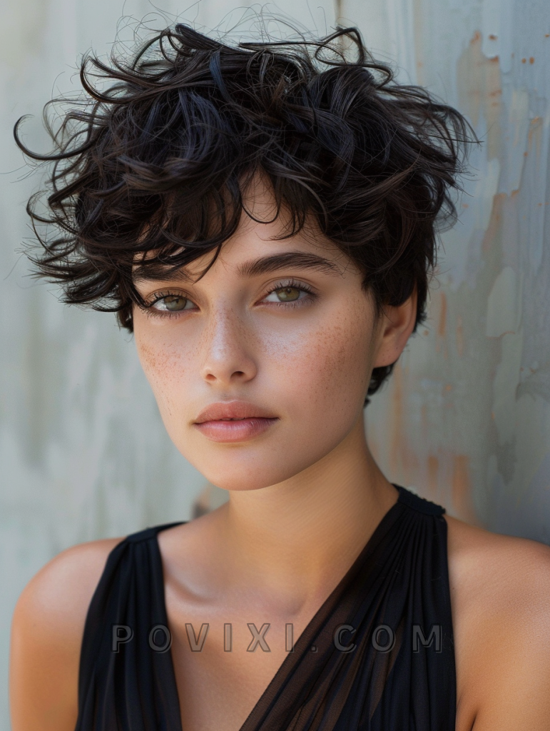 The Pixie Curls hairstyle merges the playful nature of curls with the edginess of a pixie cut, making it a top choice for those seeking a youthful yet sophisticated look. This style is particularly flattering for round faces and brings out the eyes, making them a focal point. It’s perfect for social gatherings or a casual day out.