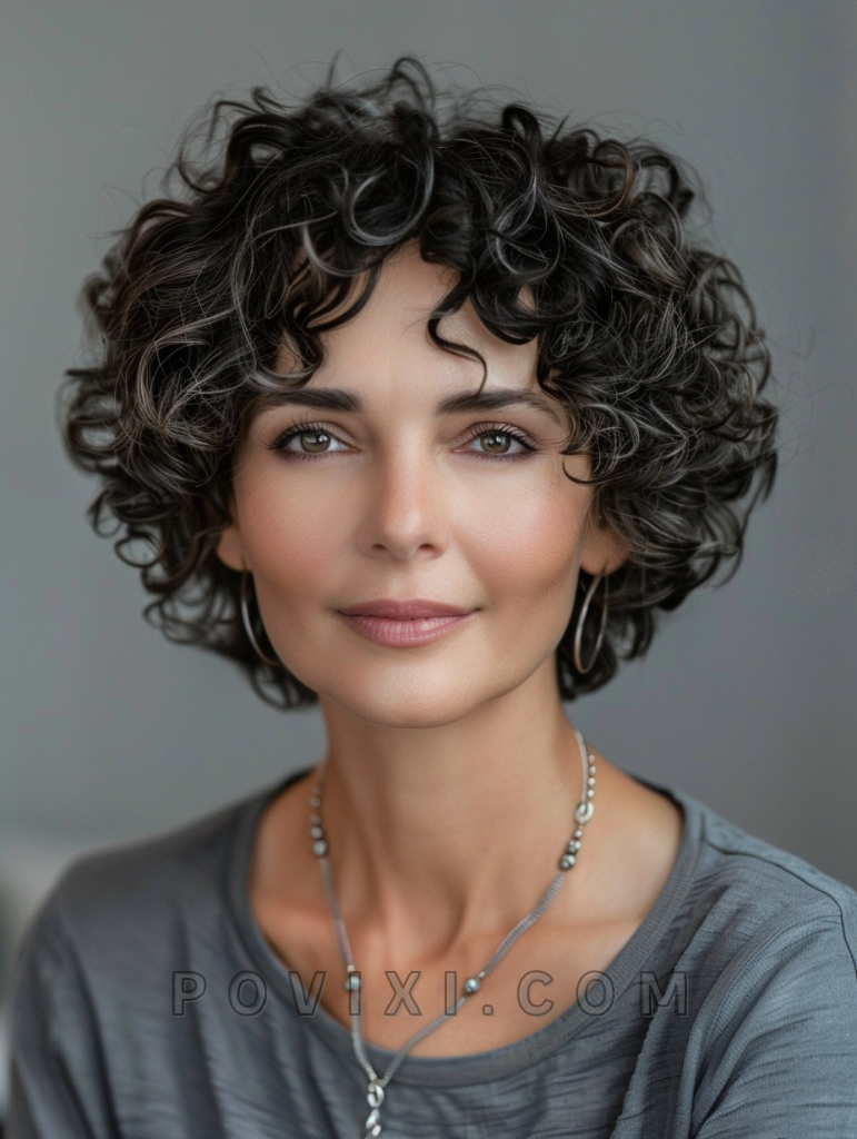 For a more defined and structured look, this haircut uses precise cuts to shape the curls into a clean, sophisticated style. It’s particularly flattering for older women and works well in corporate or formal settings.