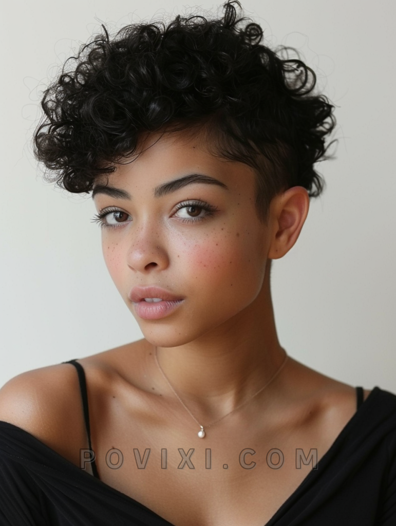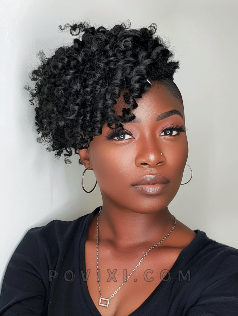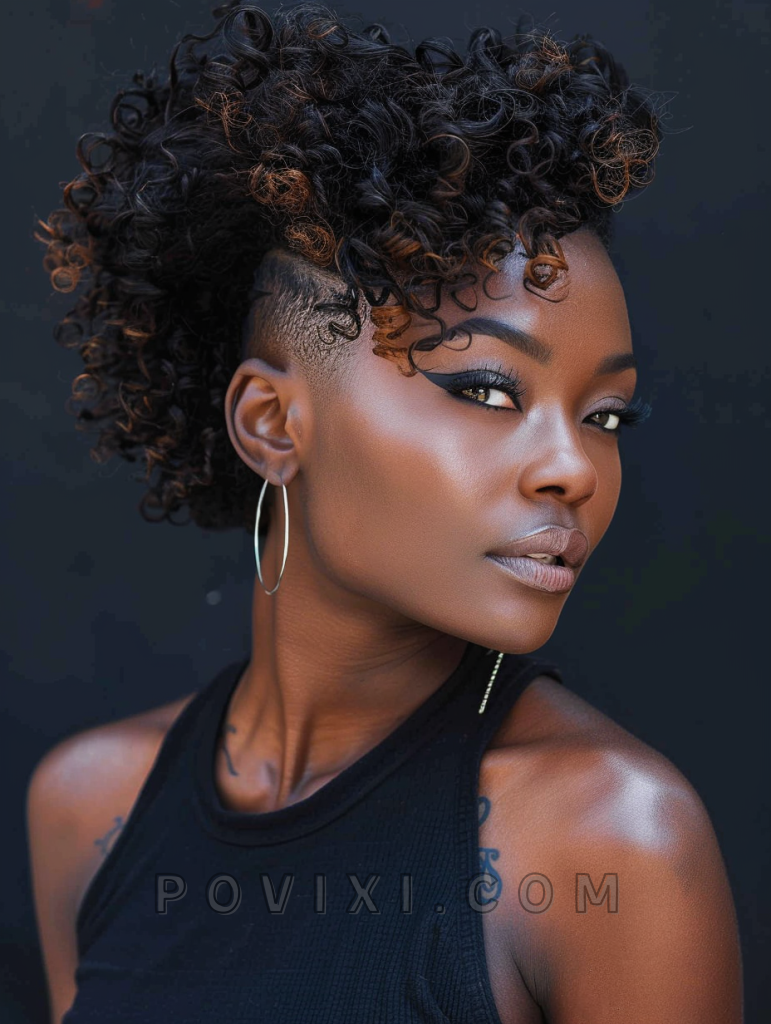 This daring look combines the elegance of flowing curls on top with a sharp undercut beneath. It’s particularly striking for natural black women who want to showcase their texture in a modern fashion. Ideal for both casual and more edgy, artistic settings, this style turns heads and makes a bold statement.
