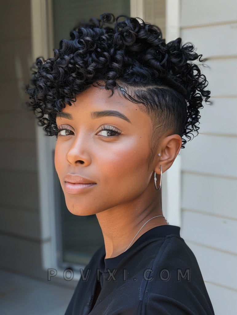 The Frohawk is an audacious choice that combines the freedom of curls with sculpted sides, resulting in a dramatic contrast. This style is especially appealing to black women and anyone with naturally thick, curly hair looking for a bold, statement-making hairstyle. It’s perfect for events where you want to stand out or as an everyday signature look.