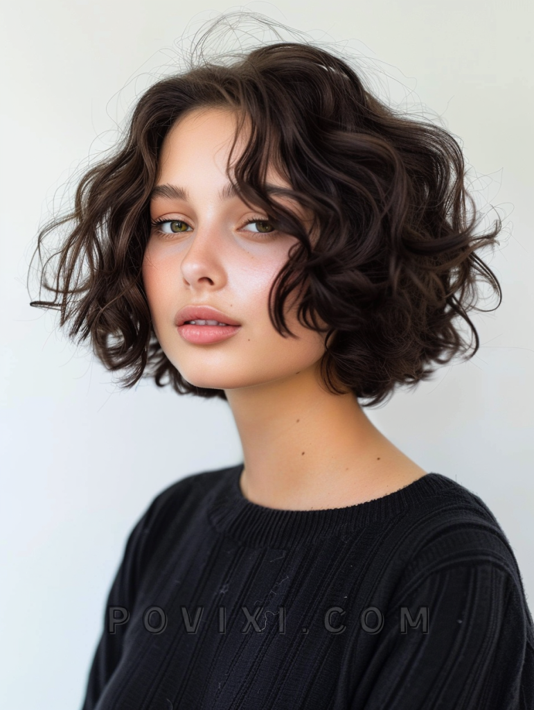 This relaxed, bohemian-style bob is perfect for those who prefer a laid-back, artistic look. With subtle layers and natural texture, it suits medium curly hair and is easy to maintain, making it ideal for creative individuals or anyone who loves a minimalist style.