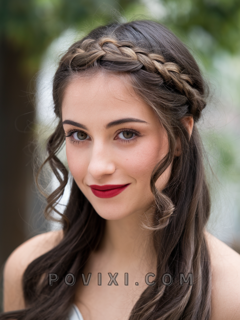 This half up half down hairstyle adds a playful twist with intricate braids, making it ideal for high school cheerleaders. The top section of hair is braided into French or Dutch braids, while the remaining hair cascades down in loose curls or straightened strands. This versatile style works for games, team photos, and even casual school events. It suits round and square faces, drawing attention to the cheekbones and eyes.