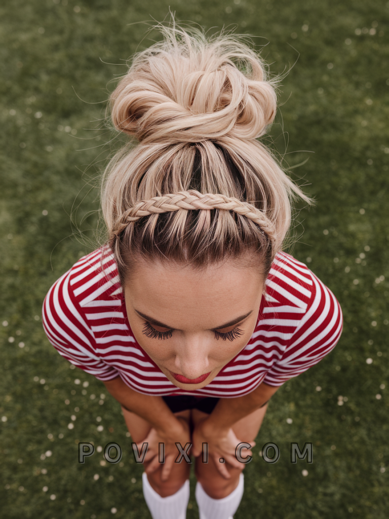 The French braid ponytail merges practicality with style, making it ideal for games or long practices. The braid starts at the crown and flows seamlessly into a high ponytail, offering a secure yet fashionable option. This style complements square and heart-shaped faces, as the braid softens angular features.