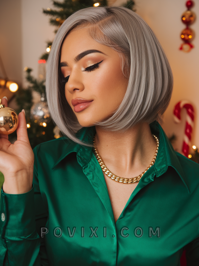 Sleek silver is a bold, icy choice for short hair, perfect for those who want to make a festive statement this holiday season.
