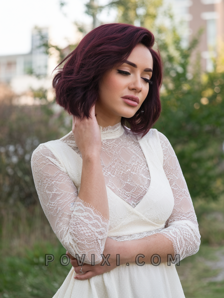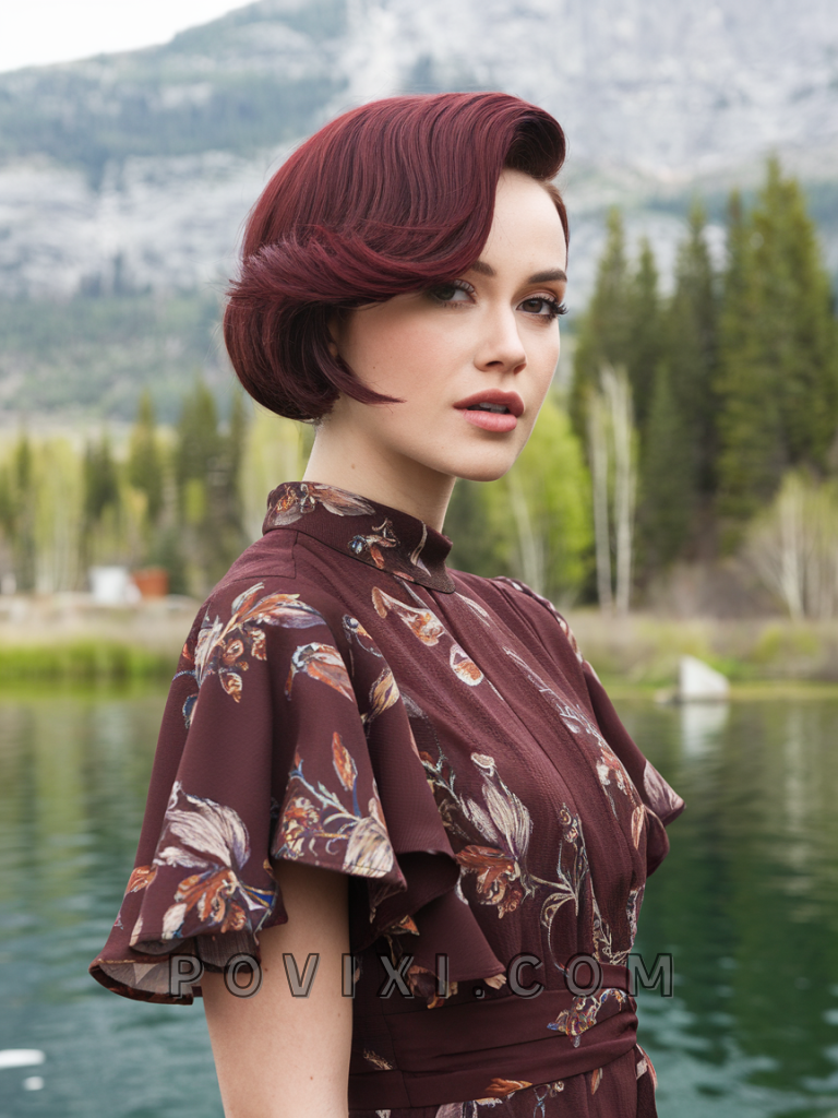 Deep burgundy is a striking option for short hair, offering a rich red tone with hints of purple. This color is perfect for date nights or festive gatherings, adding a bold statement to pixie or bob cuts. It complements olive and warm undertones, making it a versatile choice for various skin tones.