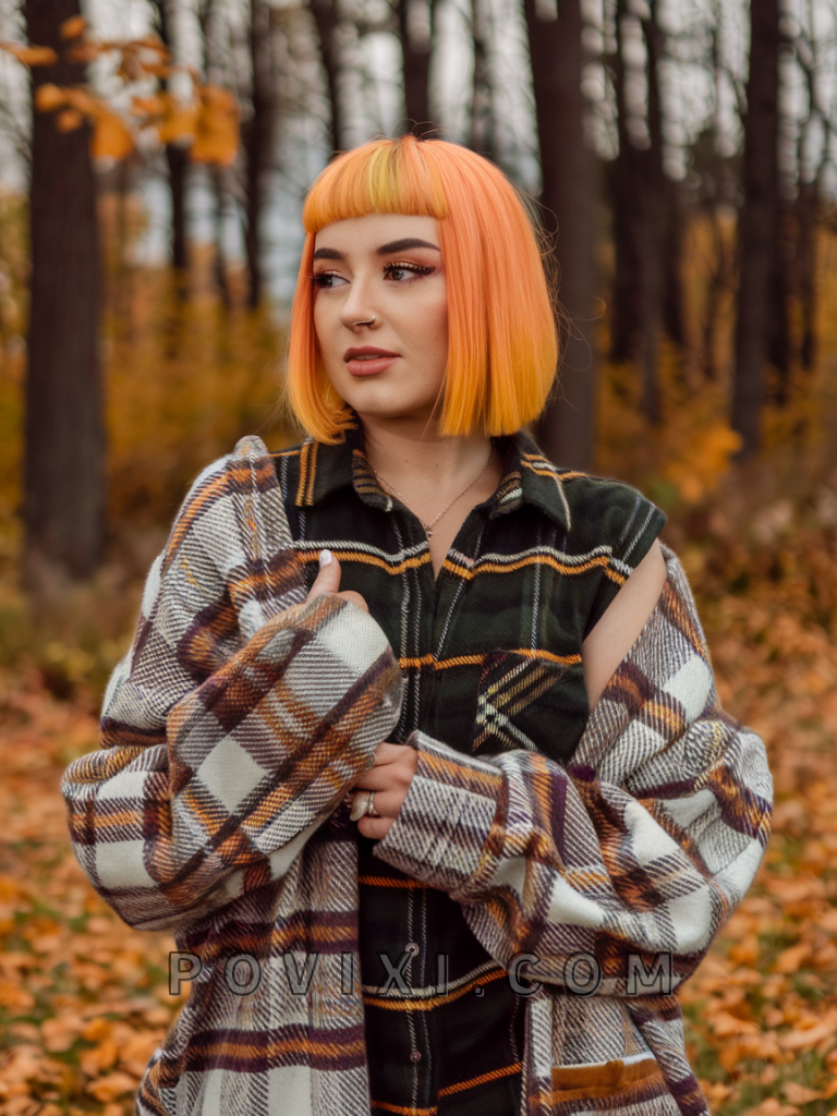 Lightening the hair is usually necessary before applying this bright orange. Use a semi-permanent dye, like Arctic Fox Sunset Orange, and avoid excessive heat styling to keep the color vibrant. A heat protectant spray will also help maintain the integrity of the hair.