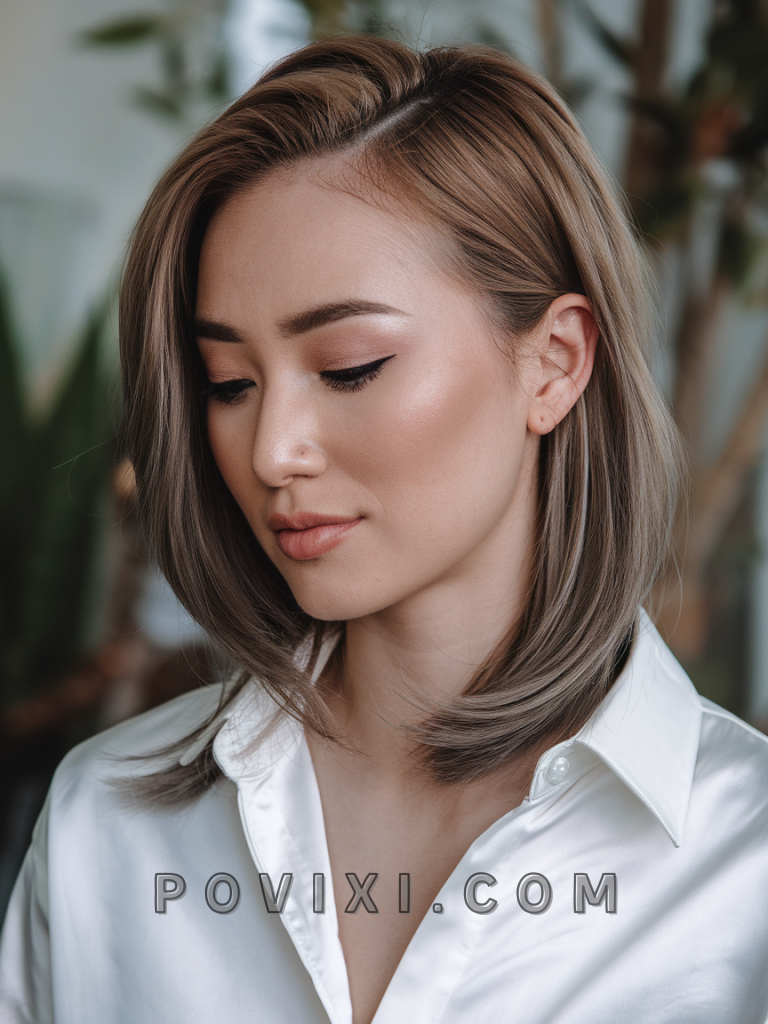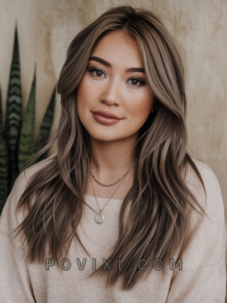 Ash brown is a sleek, muted tone that’s highly popular for Asian hair. This cool, earthy shade complements warmer skin tones and is perfect for professional or casual settings. It suits straight or wavy hair, making it an ideal choice for anyone seeking a low-maintenance yet modern look.