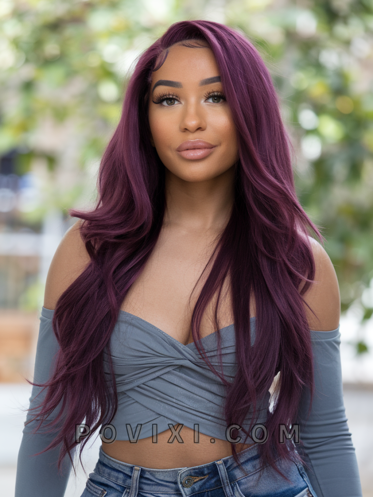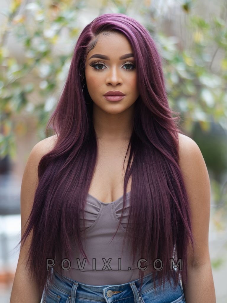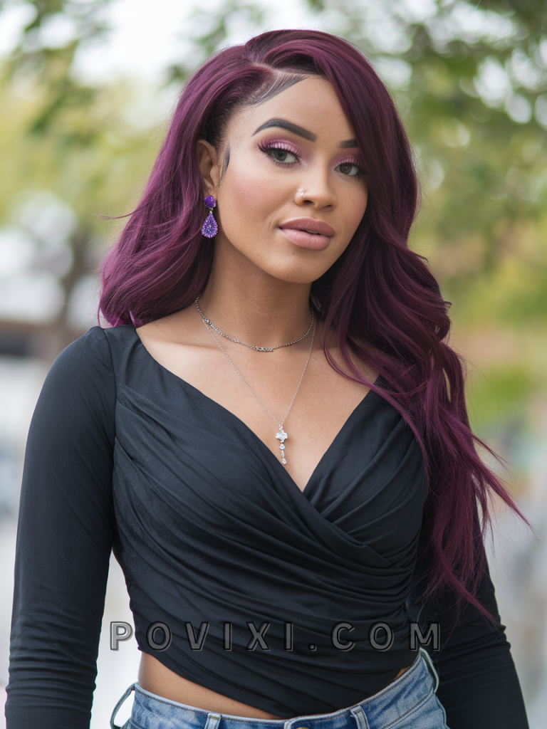 Deep purple tones are a bold and luxurious choice for black women looking to add a dramatic touch to their hair. This shade suits warmer skin tones and is perfect for parties or upscale gatherings. The rich color works well on natural curls or straightened locks, creating a glamorous effect.