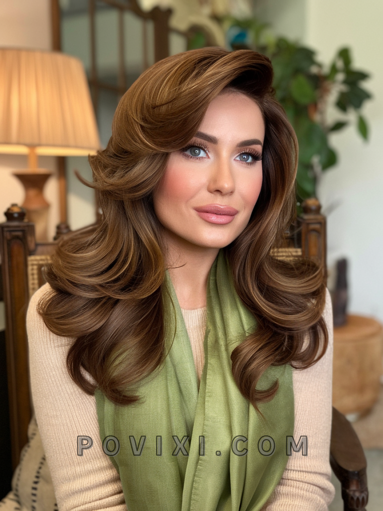 This look can be achieved through subtle highlights or balayage. Use hydrating treatments like Moroccanoil to keep the hair soft and nourished while enhancing the color’s shine.