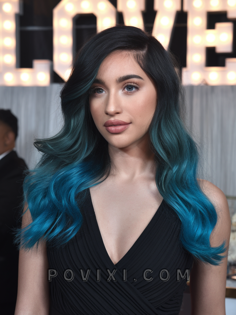 Blue ombre is a unique trend making waves in 2025. This gradient starts with black hair at the roots and transitions into a deep blue hue at the ends. Perfect for parties or winter outings, this style is best for oval and heart-shaped faces.