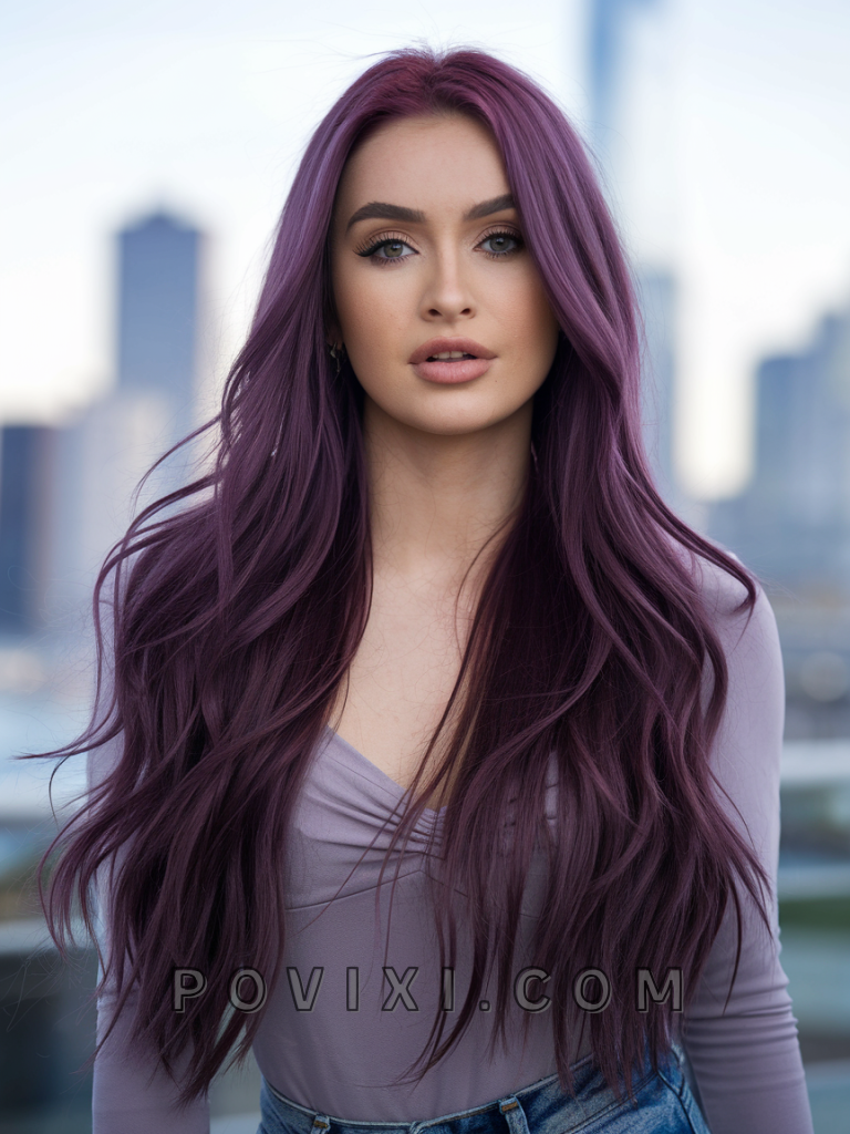 The deep winter purple trend is a bold choice that adds depth and drama to dark hair. Perfect for an evening gala or a casual dinner, this color is ideal for individuals with cooler undertones, pale skin, or brown eyes. The rich, plum-like shade provides a sophisticated look while remaining versatile for black hair and for brunettes. It’s a head-turning option that enhances natural curls or sleek straight locks.